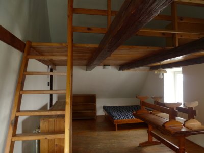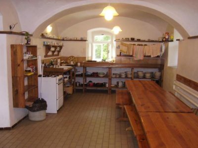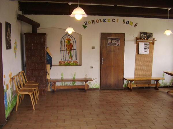 Objekt je vybaven centrálním vytápěním a společným sociálním zařízením se sprchami s teplou vodou, kuchyňkou s velkou jídelnou - společenskou místností a další kuchyní - krbovnou. Obě kuchyně jsou vybaveny plynovými sporáky, nádobím, ledničkami a mrazákem. Spí se na společné noclehárně nebo na menších pokojích ve vlastních spacácích (prostěradlo sebou). Přezůvky nutné. Doporučený je vlastní polštářek. Pro ubytované je možnost příjezdu autem a parkování u objektu.