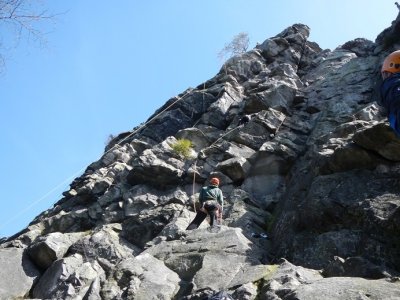 K jarní části je možnost zapůjčení základního lezeckého materiálu (odsedka, jistící pomůcka, HMS, prsák, helma, omezeně sedák).