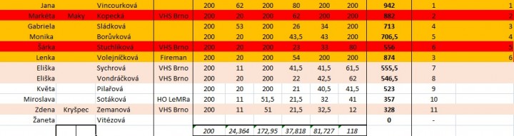Mezi ženami VHS Brno vybojovala první místo zářící kometa na temném nebi brněnské lezecké scény – Maky Kopecká (druhá v celkovém pořadí)! Pro stříbro si dolezla kotvrdovická naděje Šárka Stuchlíková, která potvrdila svoje kvality a formu a ukázala nám, že po tréningové pauze je opět na cestě k vrcholu. Na třetím místě mezi ženami VHS skončila nadějná instruktorka a milovnice tatranského lezení Eliška Sychrová, která na překližce zúročila svůj poctivý zimní trénink ve Vysokých Tatrách.