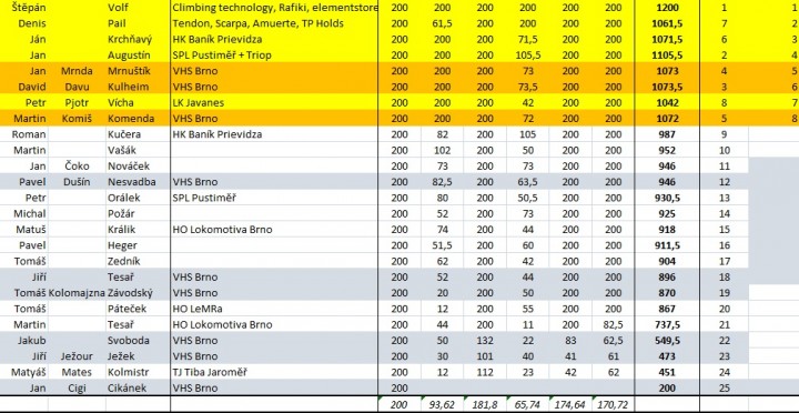 Brzy se ukázalo, zda měly větší tréningový efekt visy na lištách, shybování, nebo zdvihání půllitrů. Po úspěšném dolezení kvalifikace nadešel okamžik pravdy. Finalistky byly odeslány do izolace a postupně se dostavovaly ke svým několika minutám (u některých jen vteřinám) slávy. Finálová cesta byla opravdu těžká, a proto se většině dam podařilo prostoupit jen spodní půlkou cesty. Nejdále dolezla Jana Vincourková z Vyškova, na druhém místě skončila Maky Kopecká a třetí místo vybojovala Gabriela Sládková. Pokud ženské finále nebylo zadarmo, tak o mužích to platí dvojnásob. Ani mužskou finálovou cestu nikdo z finalistů nevylezl, ale o zajímavé a napínavé situace nebyla nouze. Gymnastické výpady střídaly baletní kreace a finalisté byli za svoje výkony po zásluze odměňováni bouřlivým potleskem. Mezi muži si pro první místo dolezl Štěpán Volf, druhé místo obsadil Denis Pail a třetí skončil Ján Krchňavý z HK Baník Prievidza.