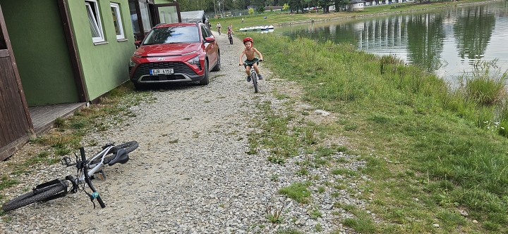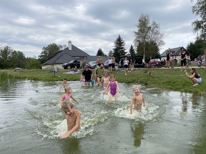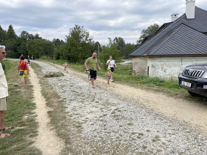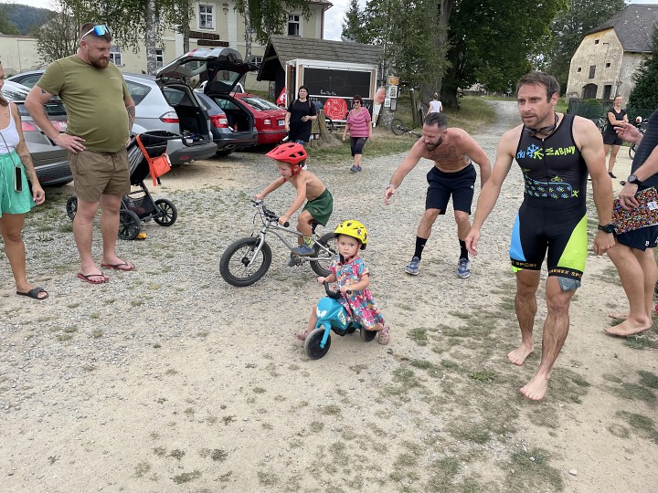 Zasloužený obdiv patří deseti dětem, které se vydaly na trať kolem rybníka, přičemž nejmladším byly teprve dva roky. Poté odstartovaly dvě (!) ženy, devět mužů a čtyři veteráni. Nejlépe se s tratí poprali Filip a Eva Šolcovi, kteří vyhráli mužskou, resp. ženskou kategorii, přitom Eva dobíhala do depa s prázdným kolem.
