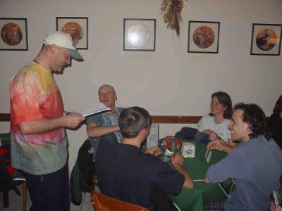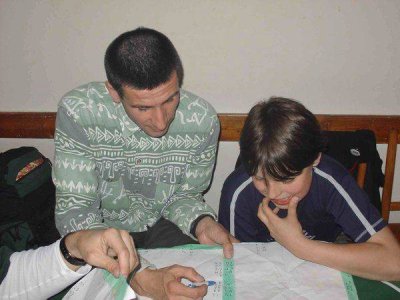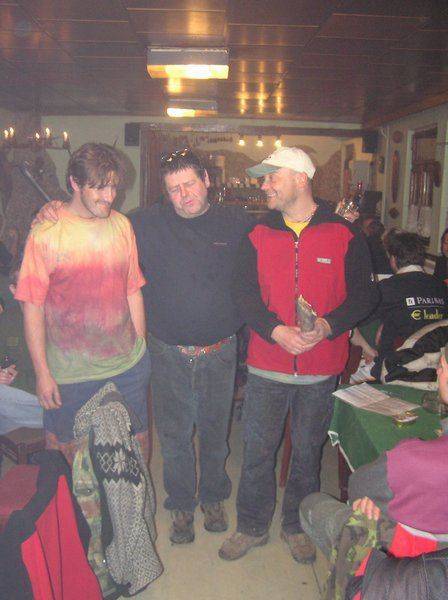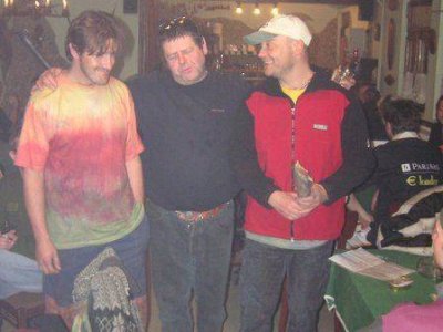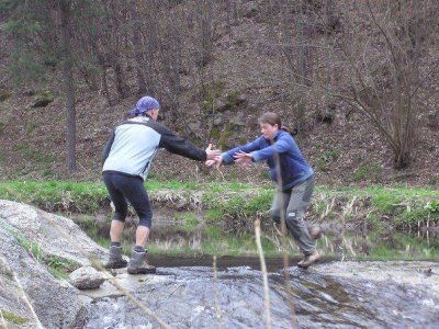 Po startu se týmy začaly řadit dle ratingu. Takový Macinkův Cacipues jsem od startu do dnešního dne ještě neviděl. První dvě zprávy rozluštili s malým zaváháním všichni, tedy pravděpodobně kromě Cacipues, ovšem vylovit ježka z klece resp. tyče, byl ořech, který zastavil noční rozlet všech. Nápovědu se vzhledem k porouchanému nápovědníku podařilo získat až nad ránem a tak všichni schoulení do svých týmových chumlů strávili noc na Vratislávce. Po obdržení nápovědy se týmy vzájemným opisováním k vyšťourání ježka z tyče nakonec dopracovaly. Zhanobením hrobu grófa Feketenagyfase družstva již s určitými rozestupy dobyla 4. zprávu a do čela se začali drát Vítězové, příští vítězové a Radioaktivní opice. Problémy se šifrou na kostelíku Hrádek podstatně zdržely vopičáky a vedení se téměř neohrožovaní ujali Vítezové. Je to teda s podivem, protože intelektuála družstva představoval profesionální hokejista a ty dva parkovištní skalkaře bychom na rychlé přesuny také netypovali. Ženský sportovní element zřejmě v motivaci squadry sehrál své. Ostatní týmy se kolem poledne začaly chovat téměř jako křoví favoritů a individuální bojovnost se vytrácela do takových komických scének jako na Schořově skalce, kde všechny týmy vytáhly svačinu a sebelítostivě začly bědovat jak jsou v pr... Na mé pobízení vyvinuly kooperativní aktivitu k nalezení zprávy. Kooperace fungovala do objevení indicie Galusem. V tu chvíli se projevila zase individualita: Galus nenápadnou gestikulací postupně odvolával členy týmu, aniž by zbytek pelotonu informoval o nálezu zprávy - krysa. Ovšem další zpráva se pro některé stala oříškem. I po vyluštění textu z účtenky v hospodě U mořského orla, nebyli schopni navázat komunikaci s místním obyvatelstvem a vytěžit ho. Tato zpráva se také stala jednou z posledních, na kterou si většina týmů sáhla. Favorité nezadržitelně zamířili k posledním zprávám a jejich motivace v té chvíli už neznala mezí. U jezu ani nevyčkali na pořádný průzkum a všichni se bez zaváhání, zcela zbytečně, ba někteří i po hlavě, vrhli do ledové Loučky, aby posléze zjistili, že stačilo namočit jednoho člena družstva a to ztěží po kolena. Poslední zpráva na pilíři Meziborského mostu pro ně byla rozhodně (na rozdíl od organizátorů) opravdovou lezeckou lahůdkou na závěr a nezbývalo než vyrazit posledních pár kiláků do cíle. Cílová plocha na Chytálkách se ukázala v nepříznivém počasí značně nevlídná (když tam Novas za mlada jezdil stávala tam prý vyhřátá jídelna pionýrského lágru a teď...?) a tak jsme zbytky soutěžících, bečku a ztěží na nohách se držící organizátorky odtransportovali do restaurace U Mořského orla, kde se to odpoledne tak hezky zauzlilo. Večer se to tady zauzlilo ještě několikrát a jako chlap mohu prohlásit, že jsem rád, že jsem od tama ráno vyšel se zdravou...no koží.