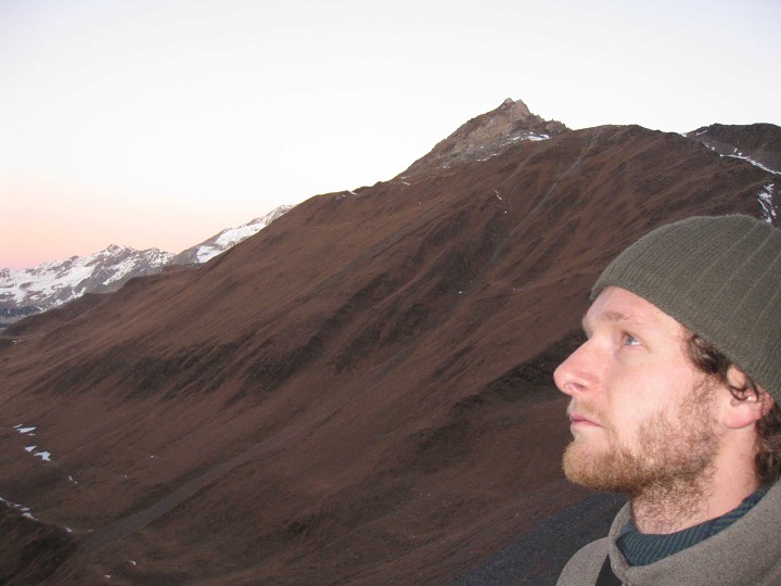 Sobota, moje prababička by řekla sobota-robota. Vstáváme před čtvrtou a vyrážíme směr Günther Messner bivak. Je noc a ráno ne a ne přijít. Je vlezlá zima. Po cestě se dívám do prava, kde by měla být naše Weißspitze. Je to sice převýšení 1000m, ale sklon by měl být kolem 50st v ledu a zadarmo. Co vidím, se mi nelíbí. Ledovec nikde, jen hnusnej suťovej svah a chřastavý skály. Do toho nepudem. Mám ze sebe, potažmo z nás, radost, ano umíme se rozhodnout správně. Před osmou dochazíme na bivak, kde potkaváme dva rakušáky. Fotíme si od nich mapu. A je to tu, v mapě to vypadá, že do stěny dá natraversovat zleva od bivaku, pak nahoru tvrdým sněhem, zase travers do prava a tím gajblem nahoru. To by jsme se vyhnuli tomu hroznýmu suťáku, přelezli do prava přes hřeben a jsme na ledovci. Jo zkusíme to!