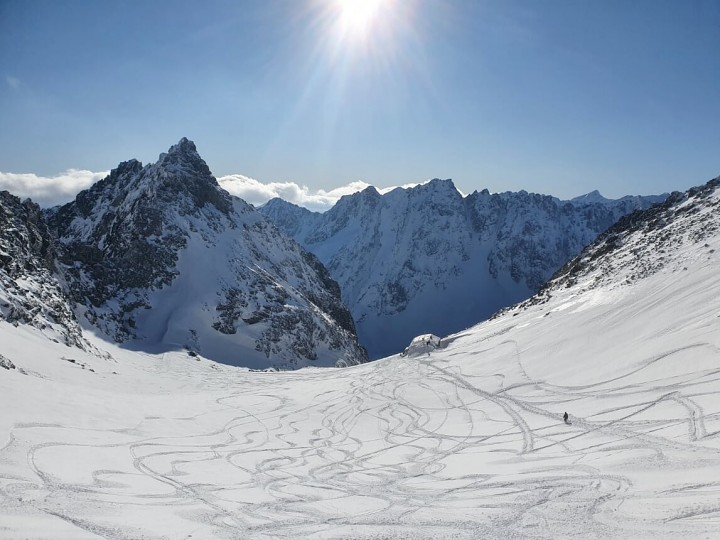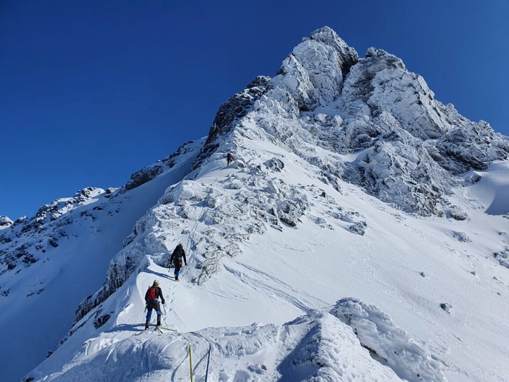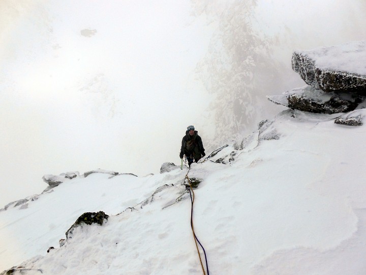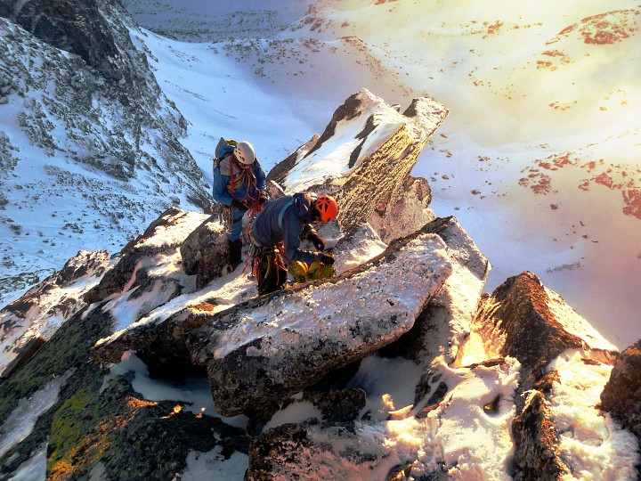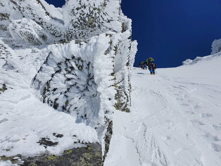 Taky se lezlo. I když podmínka tehdy zrovna nebyla. Sněhu tam nahoře sice bylo dost, jak hned z kraje zjistil Vojta, hlavní projektant učebnicového záhrabu, když při kopání ložnice č. 2 narazil na skálu až pod pěti metry sněhu. Jenže to nebyl žádný firn, spíš vrstvy různě nafoukané na přemrzlý podklad, a tak byla na místě opatrnost. V západní stěně Českého štítu, to je ta, odkud kdysi spadla lavina, která zničila chatu, leželo sněhu tolik, že si tam nikdo netroufl, a tím zůstala zavřená cesta přes Kohútika na Vysokou a do Dračí doliny. Převěj nahoře na Váze vytvořila spolehlivou závoru pro přístup do České doliny a tím k severkám Českého, Vysoké, ke Galerii Ganku nebo oblíbené východní stěně Rysů. To dost omezilo možnosti nástupů a bezpečných sestupů. Družstva horoškoly se tak postupně střídala jen ve třech cestách: západní hřeben Rysů, různé varianty severní stěny a hřebene Velké Kôpky, a jako třešnička hajzlový hřeben na Rysy. Až poslední den Mauglí s Márou odvážně otevřeli čtvrtou cestu v západní stěně Rysů, tu už ale nikdo nestihl zopakovat.