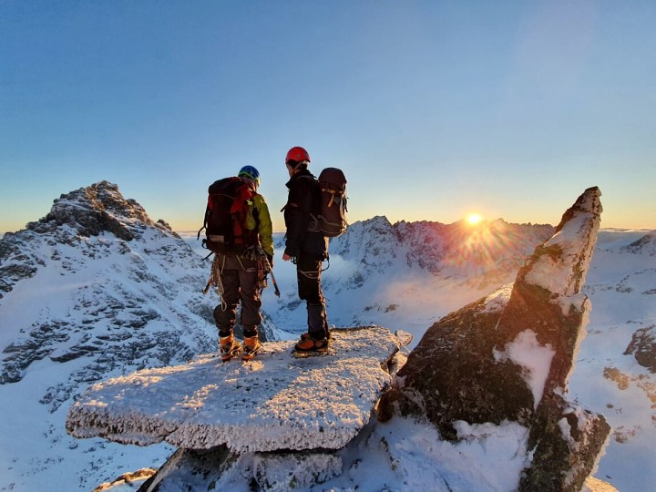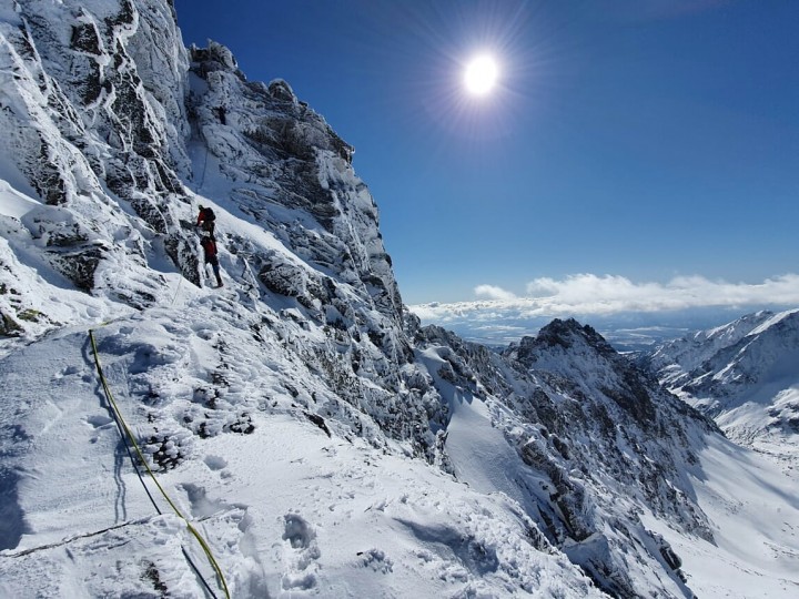 Počasí už tenkrát dávalo signály, že klimatická změna není jen výmysl teoretiků. Kdysi prý býval v zimních Tatrách plech i celý týden, a jestli se jeden den nelezlo, bylo to jen kvůli kocovině nebo únavě, ne kvůli počasí. Nad pivem na to v Dolince pod Váhou vzpomínali jen ti nejstarší. Tam to s počasím bylo jako na houpačce. Každý den byl překvapením. Horoškola tradičně začíná první den metodikou, a to bylo dobře, protože kvůli větru se lézt stejně nedalo. I během metodiky bylo třeba zafoukané batohy co chvílu vykopat a k udržení dobrého rozmaru pomohl Vojtův záhrab. Zato druhý den, čtvrtek, překvapil jasnou oblohou a bezvětřím: pravý tatranský plech! Při pohledu do Dolinky bylo hned od rána vidět, jak se tou tichou bílou nádherou prokousávají družstva ve směru svých cest, a po nějaké době ticho občas přerušilo to známé, vzdálené: Zruš! Štand! Jistím! Odpoledne se na vrcholech Rysů a Velké Kôpky objevily skupinky, zaplavené radostí z vylezené cesty – pro některé to byla první cesta v zimních horách! –, pěkného dne, i té krásy okolo. Kochaly se výhledy od Belanek přes Královu hoľu po Babiu horu.