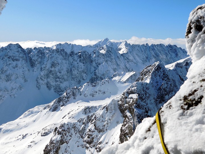 V sobotu se meteohoupačka znova přehoupla a bylo jasno. Znova se prošlapávaly cesty pod Kôpky, pod západní hřeben i k tomu hřebínku, co vede nad hajzlem. Znova ve stěnách znělo cinkání železa. Ale odpoledne se zvedl vítr, zatáhlo se, a když se jističi na štandech otočili a sledovali pohledem lano, vedoucí k druholezci, zjistili, že pozadí obrazu, na kterém ještě před chvílí byla chata, Žabí plesa a Dolinka, zakryla bílá opona. To byl signál, že je čas v klidu, ale bez kochání dolézt, slanit, a vrátit se zpátky na večírek. Někdo poslední odpoledne ještě využil ke krátkému výpadu na ledy pod Kôpkama nebo k poslednímu sjezdu Rysů.