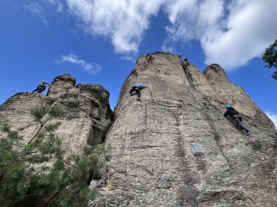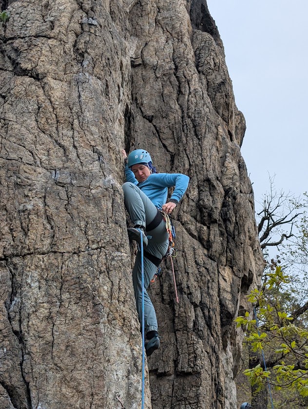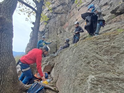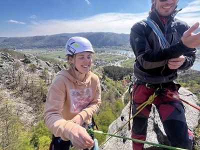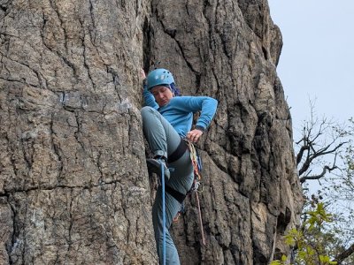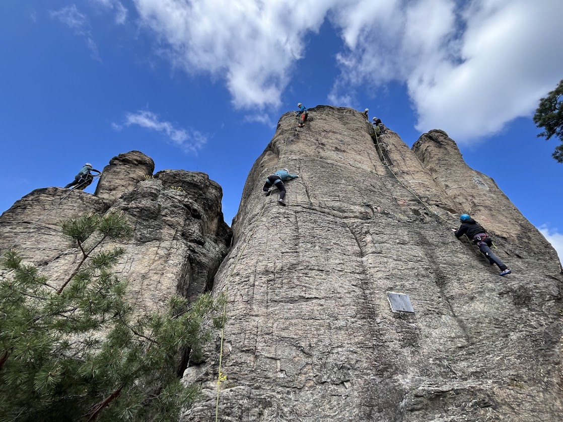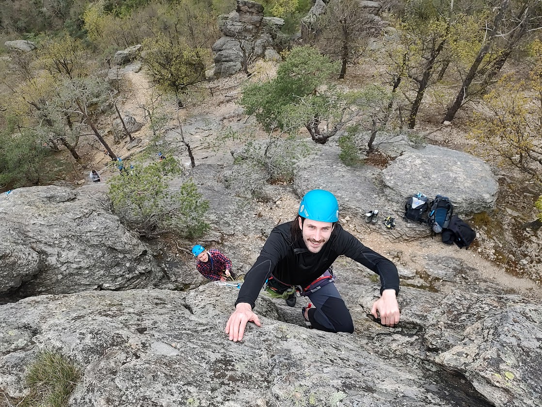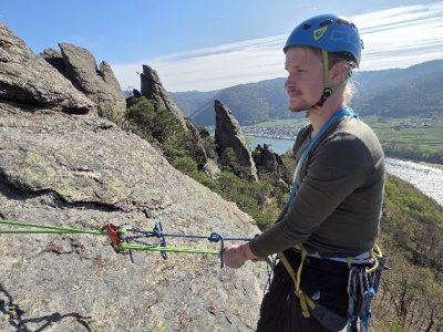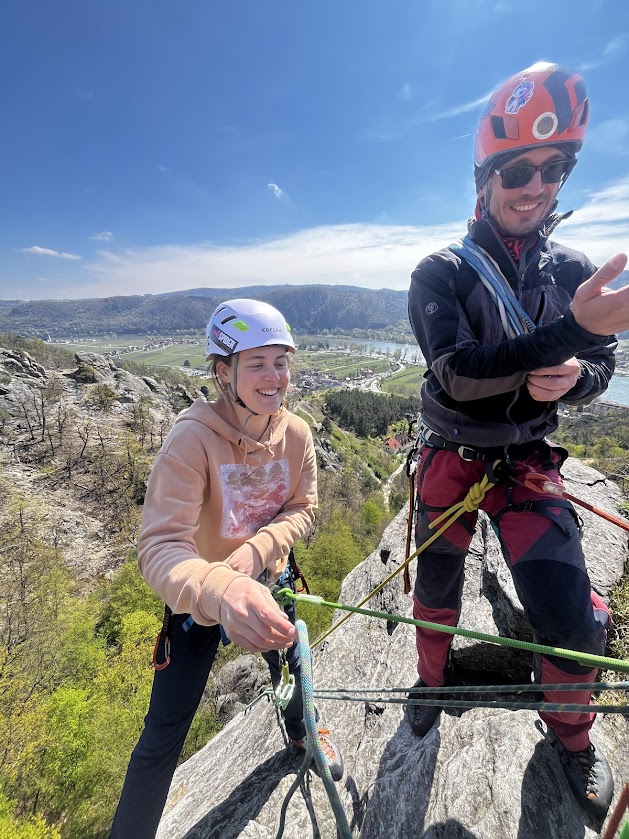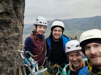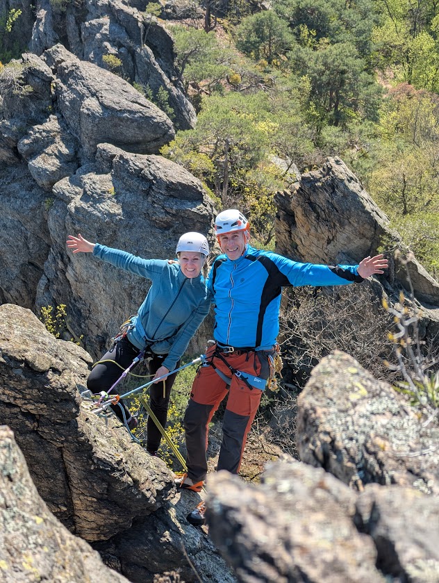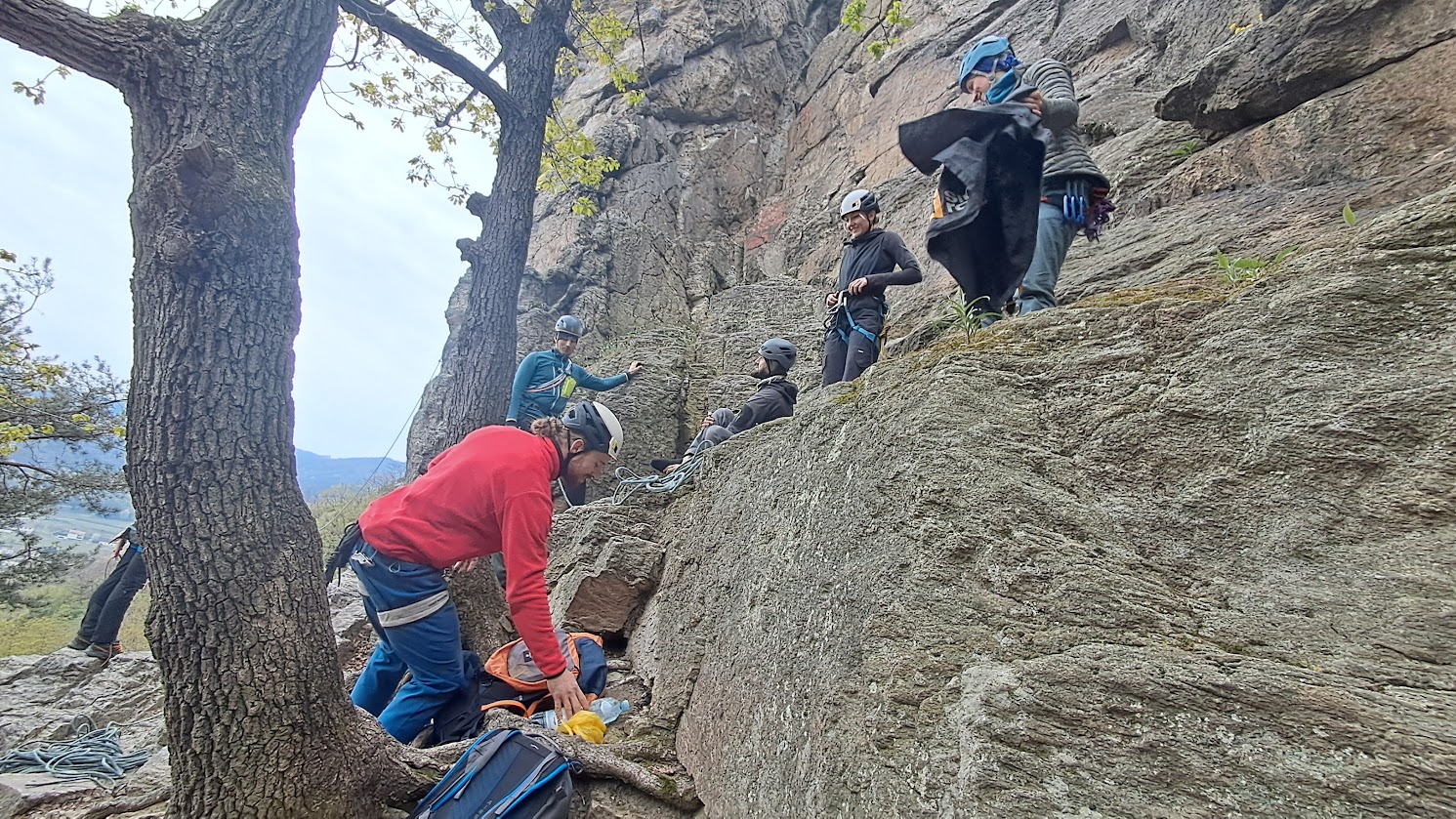 Tady si kromě lezení na sportovkách opakovali nováčci i to, co už mají umět, a zjišťovali, co všechno si (ne)zapamatovali z metodiky. Na vrcholech se snažili bezpečně odjistit své parťáky a pak se bezpečně dostat pod skálu s i bez prusíku.