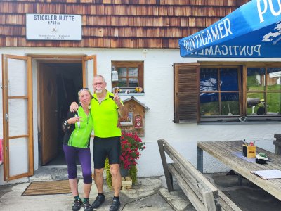 Emeritní předseda, který se přesně po roce zázračně uzdravil ze svého hrůzného pádu a jeho ošklivých následků tuto skupinku každé ráno svým SPD stepem popoháněl k vrcholům a občerstvovnám. Naštěstí jsou všichni odhodláni, protože touto dobou ani počasí neskýtá výmluvu z každodenního kroucení pedály…