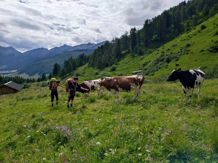Hrubý popis cesty již proběhl a tak poskočíme na cestru k Günther Messner Bivaku. Ta byla moc hezká a její značná část jde buď úplně bez pěšiny nebo po pěšině sotva znatelné přes horské pastviny Pfitscher Talu k plechové budce, o kterou jsme se dělili s místním horolezcem/zahradníkem a jeho dvěma syny a s jedním přechodníkem, který šel z Mnichova do Verony přes Alpy. Jinak nikde nikdo, jen krávy a svišti.