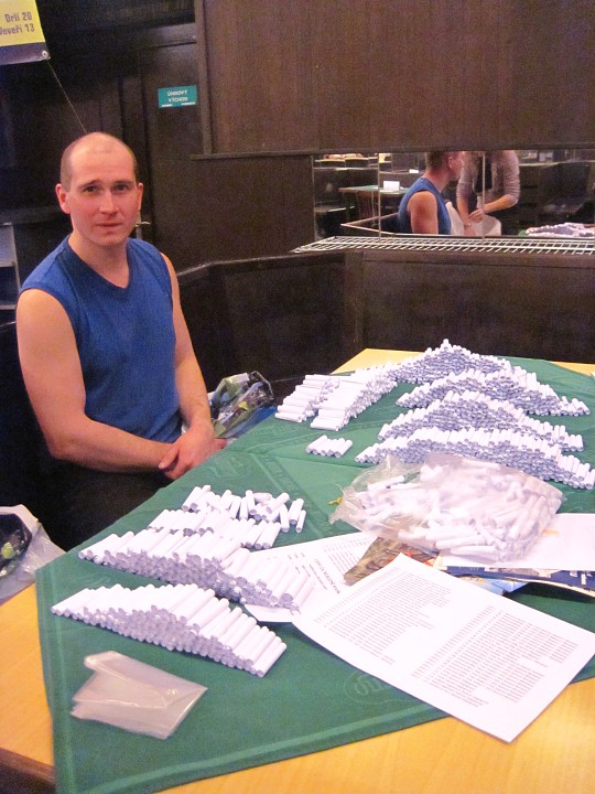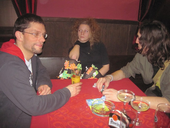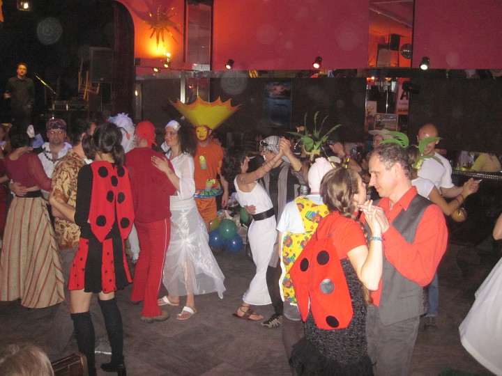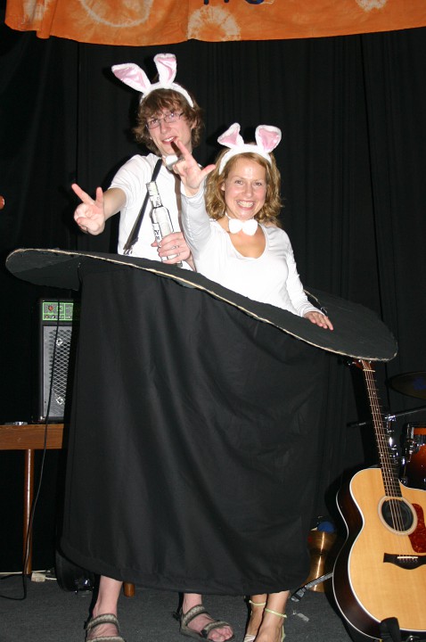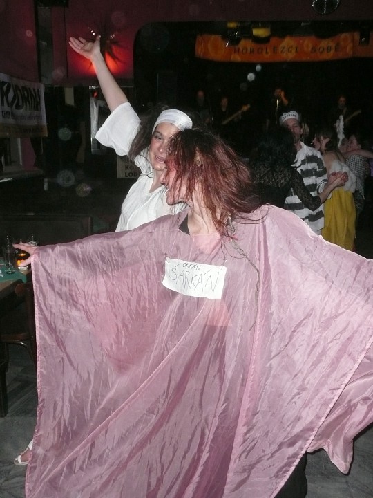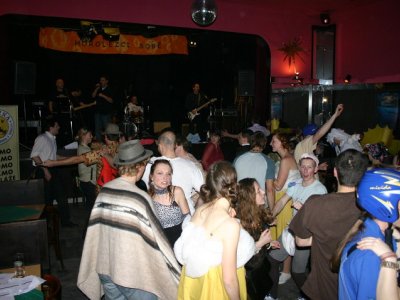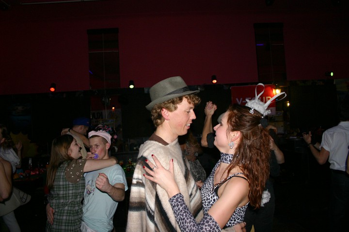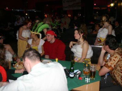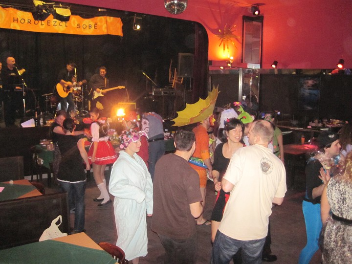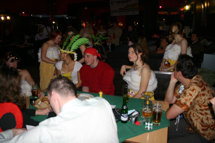 Při prodávání tomboly nám výherchtivci div neutrli ruce! Každý samozřejmě toužil vyhrát především to lano, pravým šťastlivcem se stal Rolf. Jeho meganadšení z výhry muselo dojmout i ty nejdrsnější horaly, takže jsme mu to všichni místo závidění opravdu přáli. Chybět nemohlo ani vyhlášení nejlepší masky, o čemž rozhodli samotní účastníci. Největší úspěch sklidil ,,Brněnský kokot´´ alias nový orloj ze Svoboďáku v podání Honzi Sejka. Při předávání cen jsme se od něj dozvěděli, kolik je doopravdy hodin, namísto nějakého vypadávání koulí, což považuji za největší úspěch!