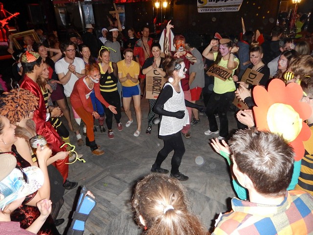 Venku už to vonělo jarem a i na Hvězdu se slétla skrumáž pestrého hmyzu. Nejdotěrnější byly mouchy, které si přivedly i vlastní hovno. Nejen nápad, ale i poctivý herecký výkon, který Ježour se Zdeňkou už pár měsíců poctivě nacvičují, si vysloužil šunkové prasátko a první místo v bodování masek.