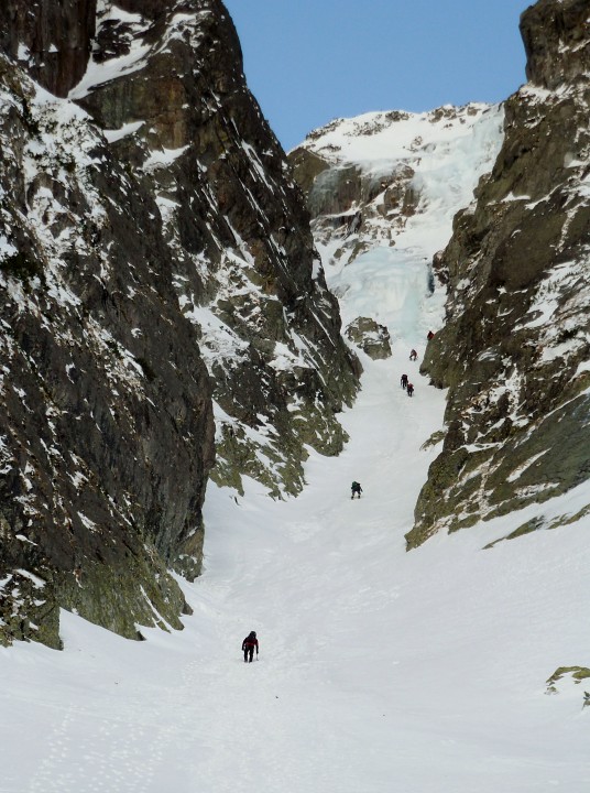 Puškáš na Pyšný, Motyka na Černý, Bocek na Baranie Rohy, levé Y, Weberovka… To je výběr klasických zimních cest, pro které přijel do Doliny Zeleného plesa silný ročník horoškoly VHS se zkušenými instruktory. Slunko šajnuje, lavinovka dvojka, pikle ostré jako žiletka. Všem je jasné, že zápisy ve vrcholovkách budou přibývat jako zářezy na pažbě Černého vlka.
