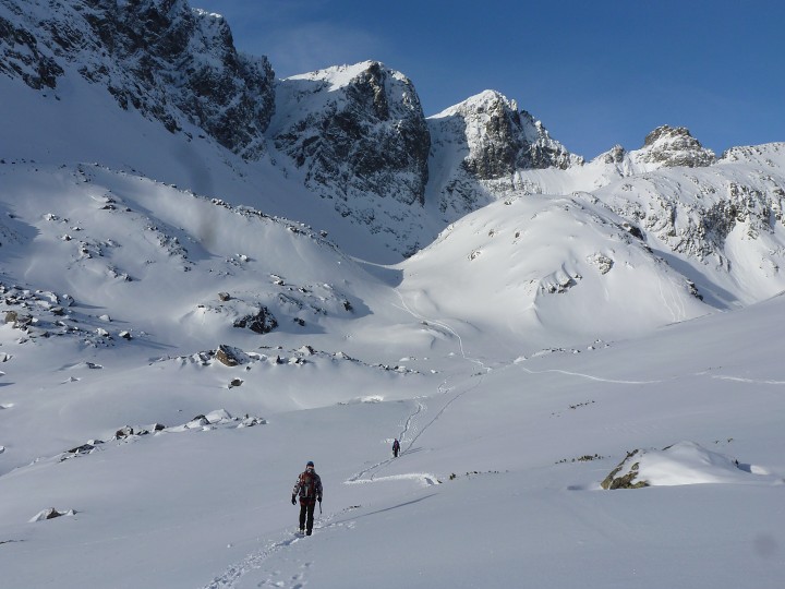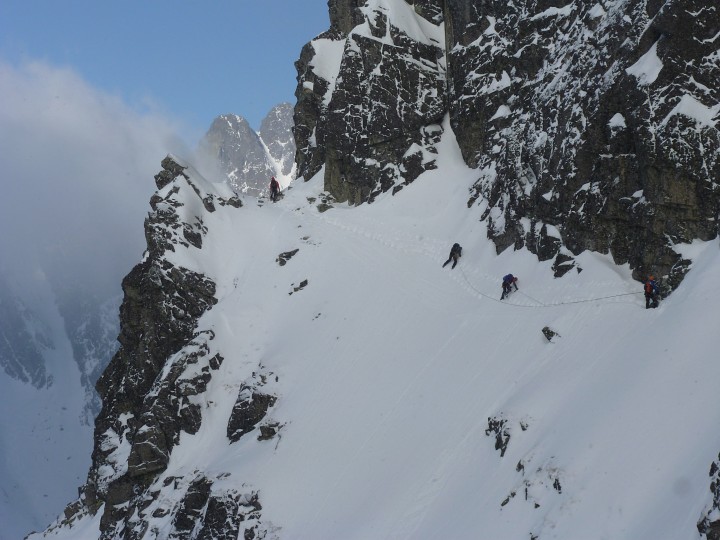 Opakování klasických zimních cest (Grosz na Javorový, Puškáš na Veľkú Slavkovskú Strážnicu, SV žlab na Kupolu aj.).