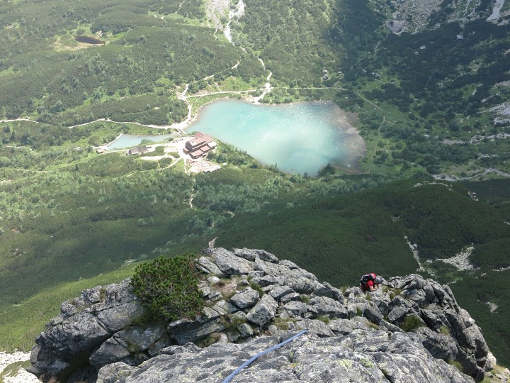 V 6,30h nás budí malé, ale zato soustavné zemětřesení v podobě agregátu. Snažíme se ještě chvilku spát, ale jakoby se nám agregát snažil naznačit, že je venku azuro, je čas na snídani a lezení. Po vydatné snídani se vesměs všichni vydáváme na stranu k Žeruchám a Kozímu štítu. Jen Petr to bere pěkně od podlahy a jdou s Terkou a Aničkou na Čierny štít. A taky Rolf, který jde s Karlosem a Luďou na Jastrabku. Lezení je parádní, krásné počasí až vedro, cesty jsou sice pod náporem i jiných dychtivých horolezců, ale protože jsou spíše kratší, tak se nezdráháme do cest nastoupit i kolem 11h. S Michalem a Kristýnou lezeme „Cestu cez knihu“ a poté zdoláváme celý hřeben přes Kozí štít. Na chatu pohodlně sestupujeme kolem 17/18h. Jako poslední se vrací Petr s holkama, když zdolali Puškášov pilier na Čierny štít. Vzhledem k tomu, že jsme toho moc nepospali, tak se ani nekoná žádný večírek.