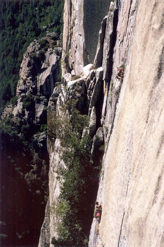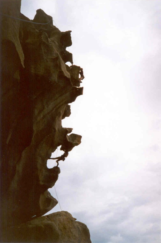 Asi 45 minut cesty autem se dostanete do NP Restonika, kde jsou na lezení vyhrazeny tři „kusy", výška opět cca 30m. Maximálně kompaktní žula bizarních tvarů, vypadající spíš jako pískovec přibarvený železem – NAMAX. V létě lezení dost death, zástava srdce není problém, kousek od skal teče říčka výborná ke koupání…takže. Jelikož se jedná o NP je problém se spaním, každý večer projíždí parta ochranářů a kdo není v campu tak pod pohrůžkou pokuty (až 5000Fr) opouští údolí – HA až na nás.
