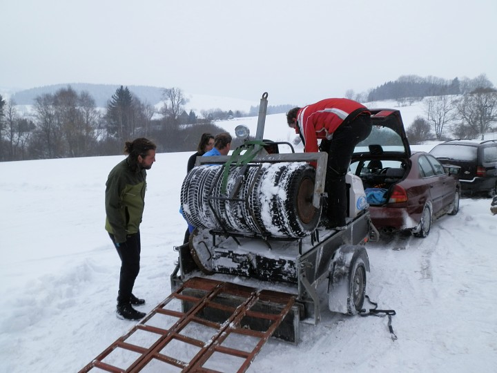 začíná to být asi tradicí, v noci z pátku na sobotu přechází fronta s hodně hustým sněžením, které vydrží až do sobotního oběda. A ráno je všechno jinak. Posílám na trať organizátory a skútr, který už zase stávkuje. Mezitím mi chodí smsky od závodníků, kteří se svými vozy zapadli na trati Brno-Blatiny. Posouvám start o půl hodiny. Některým se podařilo začátek stihnout, někteří to holt nestihli a některé slabší povahy, vyděšené varováním meteorologů, raději nevytáhli paty z Brna
