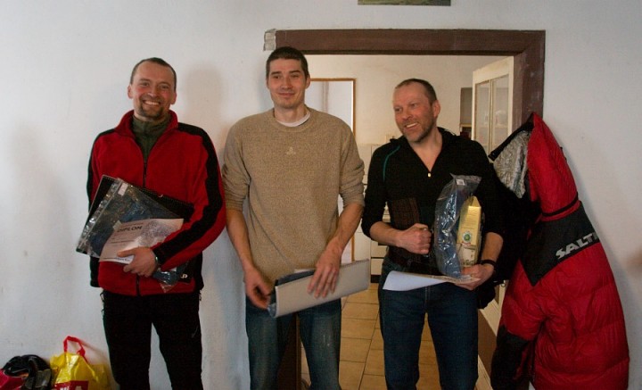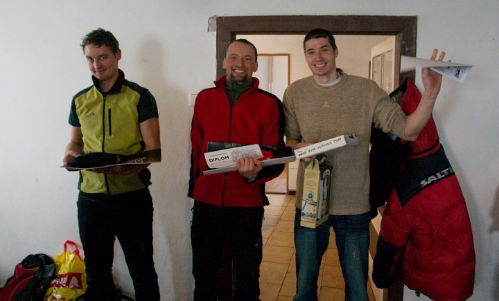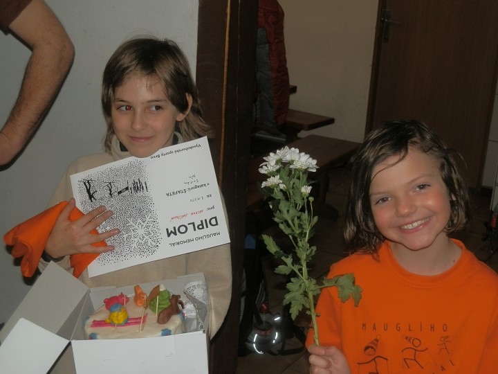 Dále bych chtěla poděkovat: Martině Pavlovcové za zorganizování krásných nových trik závodu, Katce Rujbrové za sponzoring dětských sladkých cen, Martinu Křížkovi a Marče Žižkovské za zbrusu novou grafiku závodu, Cigimu za obětavou pomoc při celé organizaci závodu a za přesné zmapování trati, Vildovi Pavelkovi za vydatnou pomoc při úpravách tratí, řidiči skútru Tomáši Řezníčkovi, časomíře Došlíkovi, výpočetnímu středisku v tradičním složení Hudysek - Šéfová, mému muži za podporu a zajištění barové občerstvovací stanice, barmanům Vendulce, Radce a Jirkovi, všem dalším organizátorům na tratích, kontrolách, nebo u startu a mé dceři za to, že se kvůli mě letos naučila běžkovat![]()