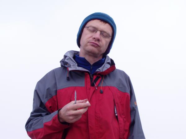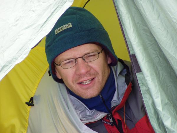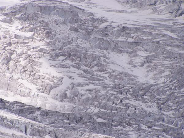 A pak už jen dolů a zazvonil zvonec… Ale ještě ne, milé děti. Cestou dolů potkáváme cosi bílého. Je to dotěrné, studené, rychlé a bílé. A je to všude. Zkoušíme počkat, kdy ho to přestane bavit. Zkoušíme to ignorovat a podnikáme vlastivědné vycházky, během nichž obdivujeme trhliny, převěje, séraky a jiná roztodivná zákoutí zimní přírody. Zkoušíme uhodnout, kterým směrem může být sever a kterým Mekka. Zkoušíme cvičně kopat záhrab, ale to bílý tam vleze taky. Tak radši zachraňujeme život třem Polákům, kteří se z bílýho vynořili na séraku nad námi a radíme jim, aby neskákali. Se slovanskou vzájemností se to táhne líp, zvlášť když mají po ruce pleskačku. Vodka nakonec ještě před setměním zahání i to bílý a tak se ještě téhož večera setkáváme se svými milášky ve stanu. To ještě netušíme, že jsme na sestupu bedlivě sledováni teleskopem Velkého bratra ze stanice horské na protějším Gornergratu. Ani tady si člověk soukromí neužije.