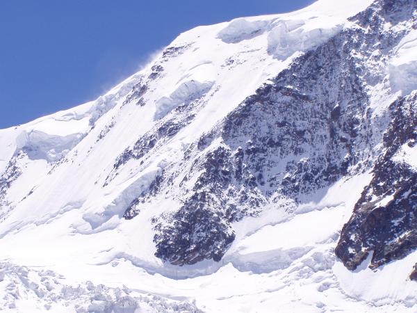 Taky že jo. V Täschi už čeká objednané taxi, v Zermattu objednaný oskar i ten s velkým M. Postupujeme alpským stylem bez pomoci nosičů tzv. švýcarskou direttisimou podle lanovky na Gornergrat a když přeskočím drobné orientační potíže už druhý den úspěšně budujeme BC na Untere Plattje nad Grenzgletscherem ve výšce 3100 m. Timing je dokonalý, na místo dobíháme zároveň s bouřkou. Počasí navrhuje na další den aklimatizační pauzu, čehož využíváme k vyjídání vynesených krys a k přípravě strategie výstupu. Družstvo A vyráží ještě navečer postavit ABC vysoko na ledovci, blíže vytouženému cíli (pro případ, že by tam snad byl sníh, si od kolemjdoucích vypůjčují návleky). Družstvo B nechce předčasně vzdát boj s nakousnutými krysami a opustit spacáky a tak se drží strategie blitzkrieg, spočívající v absolvování 1600 m rozpraskané sjezdovky v jednom dni (prý i zpět).