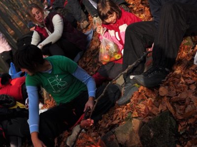 5.11. Sme se všichni sešli pod Budačinou. Největší radost měli všici z fasovaných tyčinek a roztomilého průvodce, kterého mimochodem přikládám pro případné zájemce o návštěvu - cast 1 a cast 2. Pak se banda rozprchla mezi šutry, ohniště a prášek zbabělců se začal vířit lesem.