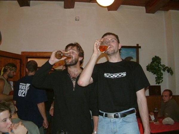 Příjezd všech účastníků byl naprosto časově nevyzpytatelný. A tak se stalo, že někteří přijeli a ti druzí už měli pár čárek na papíru nad bečkou. "Ale ouha, on to není Gambrinus?? A není toho nějak málo?? A kterej vůl, koupil dvanáctku??" Ještě, že jsem měl svůj krygl...a že nejsou na chalupě popelníky.