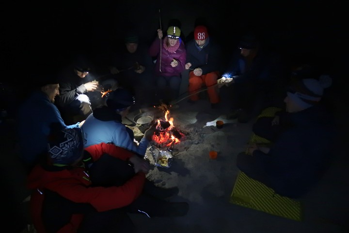 Večírek se opékáním, něčím na zahřátí a hudbou pak proběhl v Kostelíku, který poskytl sucho a klid.