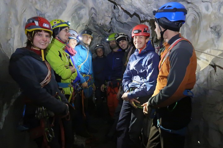 Vrcholu jsme dosáhli celkem čtyřmi směry a šťastně se setkali před společným slaněním uvnitř vápencového masivu za společnosti jeskynní fauny. Pro některé to byl také první kontakt s technickým lezením, což bylo celkem znát :)