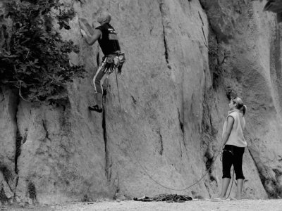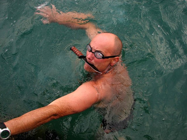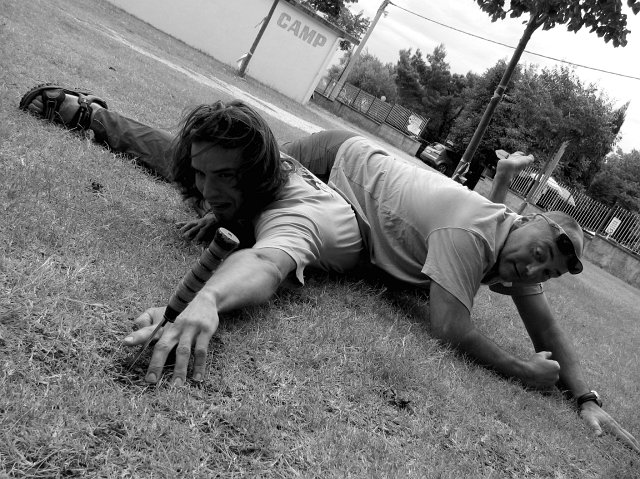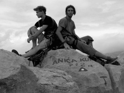 Další den do skal. Vybíráme něco poklidného a v duchu se připravujeme na ten "místní bigvál". Další den vstáváme poměrně brzo, jdeme na Aniču, není proč čekat. Stoupáme pod nástup Albatrose. Bolí mě hlava a je mi poněkud zle z včerejšího večírku, koupu si vlasy ve skoro suchém potůčku a s bolestí v očích stoupám k nástupu. Konečně. Navazujem se. První délka je celkem ojetá a poněkud z tvrdšího soudku. Sedám si před koncem, chyběl mi metr do velkého koutu, trošku nasraně a smutně se otáčím na Delona (=Tulipán). Ten nervozně přešlapuje, jde na nás bouřka...do 2 minut jsme na kost...jdem dolů. Všechno mokrý, Andy se směje, lezečky smrdí, večer to náležitě zapíjíme na molu. Kamarádi mě nechali v loďce a odvazují ji... blbý fórky, pádla nejdou ven, házím kotvu. Záchrana, k vínu jsem se dostal =) Ve větru sebou líně pohazuje anikomáří bo co svíčka, krásně voní. Domeček. Další den opět do stěn, moc to nehrotíme a ojíždíme parádní 4 délkové cesty kousek od parkálu, je to luxus, zvykáme si na ty žiletky a žlábky. K večeru jdeme na lov slávek k asi 1km vzdálenému molu. Lov je zdařilý. Večerě o to víc, Verča si maže housku s máslem...vůbec netuší o co přichází. Rytmus dne rozhodně nenahrává ňákým ambiciózním plánům, tj. brzkým nástupům do stěny, příliš nám to nevadí. Objevuju novou lehce adrenalinovou hru – "roztahovaná" (zastínila i Andyho ranní berušku na podporu peristaltiky). Po pivech přibývá adrenalin. Andy svým palcem testuje ostří svého nového U.S. Marine Corps nože, zdá se že funguje. Večer dáváme opět pár pokusů na lajně, začíná nám to i trošku jít.