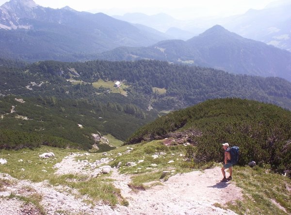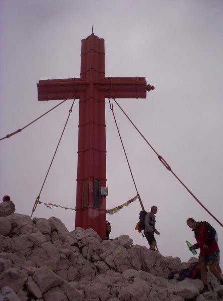 Na vrcholu mě Borek překvapil plechovkou piva, kterou vytáhl z jeho objemného batohu. Počkali jsme na ostatní a sestupovali po normální výstupové trase, značené č.260. Po cestě jsme měli potkat Pěšáky, ale cesta byla pro ně příliš dlouhá, a tak vrchol zcela vynechali. Našli jsme je v sedle, kde jsme odbočili na cestu vedoucí k chatě, kde jsme měli domluvený nocleh. Z výšky 2515m jsme museli sestoupit do výšky 1700m. Už toho bylo vcelku dost.