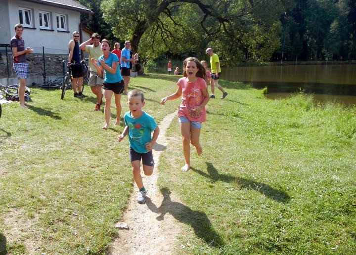 V dětské kategorii bylo jen 5 závodníků, kteří byly osvobozeni od plavání. Na kole musely objet 2x rybník a 1x jej oběhnout.