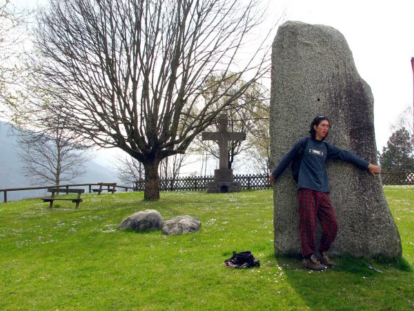 Jakási nová – Promhegin. Jsou to skalky ve vesnici por hřištěm. Tak 40 cest hodně okolo 5c - 6b. Chyty a stupy jsou všude, jde totiř o jakýsi slepenec vápna s kamením. Zajímavý, ale dost ostrý a posléze jednotvárný. Na téhle straně údolí začala bouřka. A tak celí spokojení jedeme do města nakupovat. Prej to dělá člověku dobře jak cítí ty dotýkající se chapadla obchodů. Red Point 1+2, La Sportiva a dalších. Vše na jedné ulici. Na pizzu nebo na kafe se chodí v sedácích, všude cinkají karabiny jako módní doplněk... Ale hlavně: V Arcu nikdy neprší! Ne jinak tomu bylo i teď. Dali jsme pizzu u Rudovýho kámoše a jeli naposledy přespat. Před večeří jsme se dorazili na osamocených skalách v Crosanu. Dopilo se pivko, dojedli se "Tedíci"... V noci zvracel tentokrát František (Mrnda spal vedle mě).