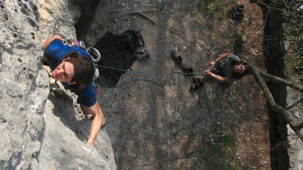 Po ránu jsem vlastně teprve zjistil kde to jsem a kdože to přijel s Tomem a Peťou. No Vojta a Ruda to byl. A tak se začalo konečně teda i lézt. Velký auto jelo do Naga, naše jelo za "bezkarburátorovým" vozem TM. Nalákali jsme se Chuckovým: "Hoši tady ta oblast je ale fakt Parádní!" Oproti pozdějším chvílím to opravdu byla pravda a my, Arca neznalí, jsme se parádně seznámili v Norigliu se neojetým šutrem, kde nikdo nebyl. Jak je známo západní klasa bývá lehčí a proto padaly i cesty "na body" (nový to fenomén). 2b a podobně...