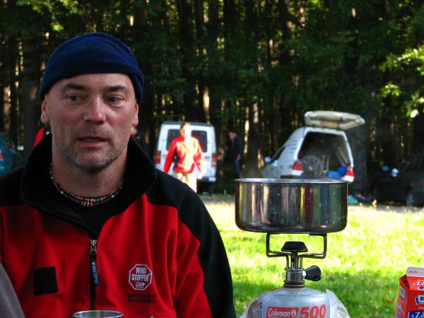 Hospůdka před pár lety vyhořela, ale nyní je již úplně opravená a září novotou. Hospodští v pohodě, polévka výborná, pivo jakbysmet. Chvíli jsme poseděli, uvítací večírek se rozběhl, ale nakonec zůstal v klidných mezích a všichni (jen lehce „opivení”) se rozešli stavět stany. Někteří to zapíchli rovnou pod korunami stromů, což byla dobrá volba z důvodů krásného výhledu=)