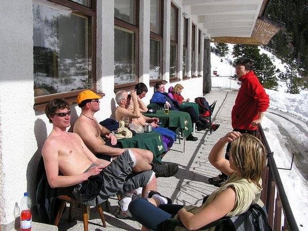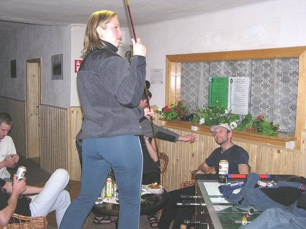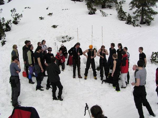 Celý týden pobytu na chatě u Popradského plesa neměl nikdo moc času na odpočinek. V každé chvíli se dělo něco, co jsme dělali s radostí a nadšením, a nezkazilo nám to ani počasí, které přineslo velkou oblevu a s ní i objektivní nebezpečí lavin. Instruktoři jako staří psi dorazili většinou vlastní dopravou, a tak jen nováčci si vyzkoušeli jízdu vlakem "po staru." Jízda vlakem. Snad každý jednou jel do Tater vlakem. Odjezd s batohem přečnívajícím vlastní osobu. Pohodovou jízdu s kámoši. Otravné pohraničníky a ranní příjezd do Popradu. Ti, kteří moc bumbali, asi nezapomenou vlastní výstup na chatu. Tvrdé probuzení.
