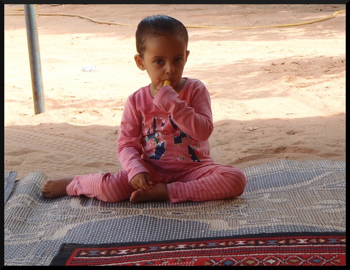 Další den se jdeme dopoledne podívat k Lawrencovu prameni. Tady se kdysi proháněl na velbloudu legendární Thomas Edward Lawrence, zvaný Lawrence z Arábie, který vedl Araby ve válce proti Turkům. V poledne jdeme na čaj k Mohammedovi domů. Má postavený pěkný dům ve vesničce a seznamujeme se i s jeho ženou a dětmi. Odpoledne lezeme s Tomem legendární cestu Goldfinger ve východní stěně Jebel Rum, která je už ve stínu. V prvních dvou délkách není písek moc dobré kvality, ale třetí délka stojí za to. Krásná spára, která se dá nádherně odjistit a další délka je lehčím kouto – komínem na vrchol věže, kde Goldfinger končí. Slaňujeme dolů vedlejší cestou Trubadour a čekáme na Jiříka s Eliškou, kteří mezitím vylezli cestu Walk like an Egyptian vlevo od nás.