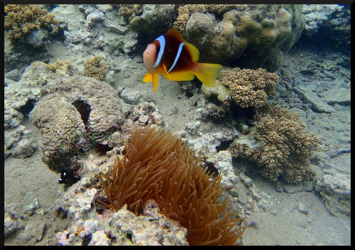 V Aqabě se ubytováváme v hotelu Jordan flower, jsme všichni 4 v jednom pokoji s pár šváby, sprcha a záchod je na chodbě. V hotelu jinak nikdo není a vypadá to tam jak v americkém hororu, ale na přespání to stačí, pro naše účely ideální. Kromě toho jsme zjistili, že ve 4. patře je terasa, kde je neskutečný nepořádek, ale je od tam krásný výhled na Aqabu, mešitu a Rudé moře. V Aqabě chodíme po městě, nakupujeme, kávu, čaj, koření a konečně taky pivo „Petra“. Pozorujeme život v arabském městě. Druhý den jedeme taxíkem na South beach, kde je korálový útes. Kupujeme potápěčské brýle a potápíme se celý den na útesu, který je už pár metrů od břehu. Na útesu je spousta ryb, takže potápění je velký zážitek. Odpoledne se však mění počasí, přichází černé mraky a déšť. Vítr žene po pláži písek a zanedlouho se nedá už být venku. Místní policajt nám otevírá místnost v mešitě, kde přečkáváme nejhorší bouřku a pak jedeme zpět do Aqaby.