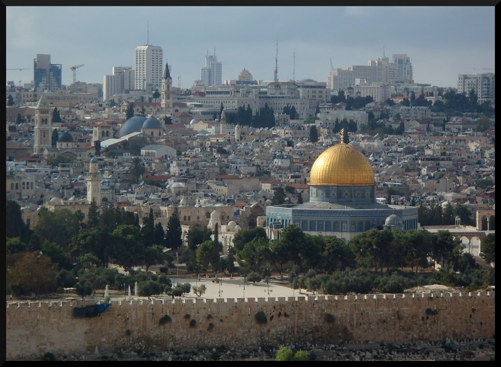 Odpoledne dorazíme do místa, kde už opravdu nemůže projet taxík z Aqaby. Nassir chce za cestu 120 USD, prý za to, že nám řekl plno věcí (asi chce sanovat pokutu). 5 USD na jednoho navíc už nás nezabije, tak mu dáváme 120 a přestupujeme do místního taxíku (ten už je v ceně), který nás veze pár kilometrů na King Hussein (Allenby) Bridge spojující Jordánsko se západním břehem Jordánu. Opět se roztáčí kolotoč razítek, vybalování friendů a lan, nechápavé pohledy pohraničníků.. a asi po dvou hodinách jsme v Izraeli. Most přes Jordán přejíždíme v autobuse s několika dalšími turisty, které známe z Aqaby, a pár místňáky. Nebe se zatahuje černými mračny a spouští se liják jaký jsem dlouho nezažil. Naštěstí od hraničního přechodu jezdí autobus přes palestinské území přímo do Jeruzaléma, takže využíváme této možnosti a jedeme přes Jericho na západ a asi za hodinu spatříme Jeruzalémské hradby.
