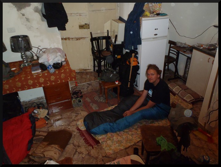 Večer bloudíme po centru Jeruzaléma s velkými batohy a snažíme se sehnat nějaké ubytování. Do hotelu se nám nechce, tak se ptáme po cenách a u Jaffa Gate narazíme na týpka, který nám nabízí jeden pokoj se sprchou. Jdeme kousek s ním a týpek nás vede k staršímu Židovi, a ukazuje nám parádní pokoj, kde je i sprcha a záchod. Je to trochu punkový styl, všude plno krámů, židle a podobně, ale jsou tam i 2 postele, takže na přespání super, 2 z nás budou spát na zemi ve spacáku. Chvíli smlouváme o ceně a pak se domlouváme, že zůstaneme 2 noci.