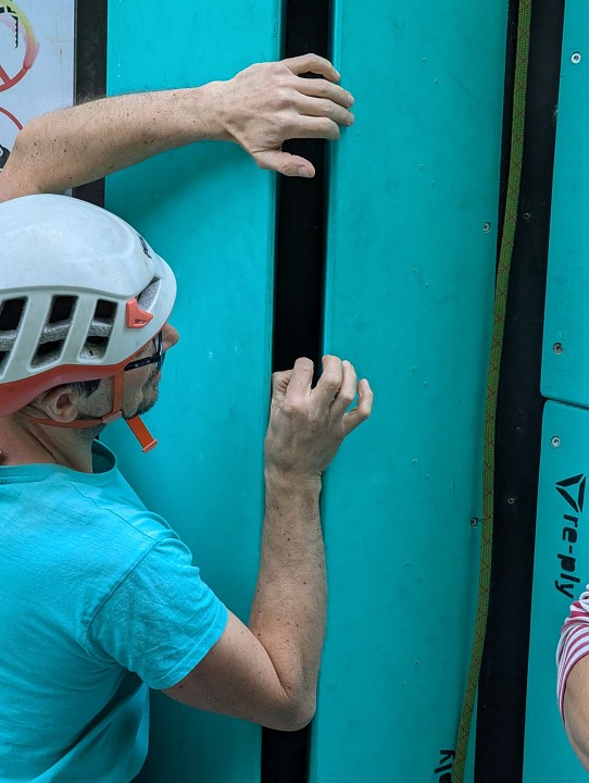 Dějištěm akce bylo brněnské spářiště, místo, kde se sny mění v otlačené nohy a ruce a kde maglajz nestačí – chce to i duševní odhodlání a řádnou dávku trpělivosti to zkoušet. Workshop vedl Tom, stavitel tohoto chrámu vertikální bolesti, a spolu s Honzou nás zasvěcovali do tajů všech možných velikostí spár – od těch, kam sotva strčíte prst, až po širočiny, kde se pohodlně uvelebí žába i pěst zároveň.