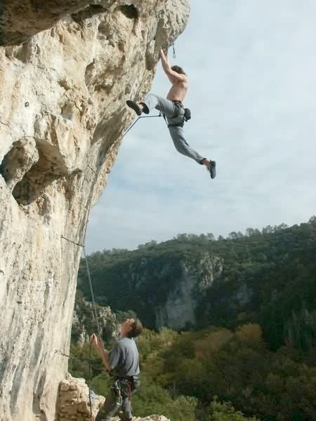 JEDEME NA VÝLET!!! ...a do Francie!!! Co na tom, že je listopad a sem tam poletují vločky. V sestavě Robi, Dudlev, Dlohys, Marťas, Víťák, Libor (později se zamiluje, ovšem vztah nemá dlouhého trvání, nakonec vše vyřeší RT) a PS. Hrnem to přes Dojčland, Mulhaus, Besancon, Lyon, Avignon, Aix a jsme tam - Chateauvert. "Tam se vám bude líbit", znělo nespočet hlasů před odjezdem. A líbilo. 70 metrů vysoká centrální stěna, kde se leze "po těžku", avšak čím dál doprava, tím lehčí a určitě stojí ZATO. Průvodce popisuje na 300 cest, takže práce je dost. Charakter lezení jsou stisky, spíš lišty a občas se najdou i spoďáky. Koupat se dá v řece 5 minut pod stěnou. Vodu jsme brali ve vesničce Correns. Byla NONPOTABLE, ale chutná. Ve vinohradech vynikající POZDNÍ SBĚR! Spaní: