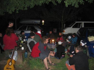 ...kupujeme 10 litrů červeného na teď, 5 na večer a nějaké lahve. Na priglu slunce pálí a lezci se válí. Mícháme z červeného padynu (50 na 50) na žízeň. A resťák začíná rychle nabírat na obrátkách. Do auta nastupujeme v pěkné parádičce (no a někteří jak pumy). Zpíváme na CDa co nám hrdlo stačí...Stáčírna 2