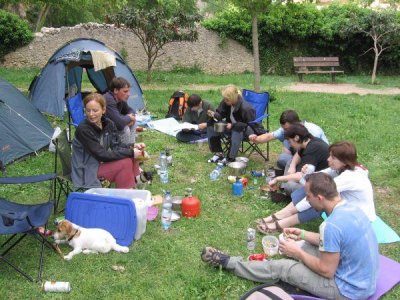 ...poslední den sedím v kempu, nohu zavázanou, čtu knížku a užívám pohody. Výlet se chýlí ke konci. Na večer balení a vyrážíme Pokud to půjde dobře, zítra odpoledne jsme doma. Fotíme si mapy na digitál. Automat se dá řídit i bez levé nohy. Andyho vysílačky fungují. Auto až na pár vyjímek šlape, opět Monaco a tunely. Pokus o šetření dálničních poplatků stál Mauglího odřeniny, když se zřítil z dálničního nájezdu, ale ve svém důsledku byl tento pokus neplatný. Hlavně, že to neskončilo hůř. Vídeň tentokrát objíždíme a na pumpě ve Znojmě si (konečně) dáváme pravé české bagety Cvalík, Labužník, Kuřecí mls, Crocodille a kafe z automatu. No humus na který jsme už všichni zvyklí. Závěrečné závody do vrchu, čurací pauza v zatáčce u amerického bunkru a Brno je tu...P.S: A jaké to bylo? Že jsme jenom večírkovali? Chlastali? Koupali se? Bloudili s autem ? Že jsme nelezli? Jasněže !! No a výsledky v evidenci výstupů jsme si vymysleli abychom to celé maskovali...