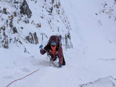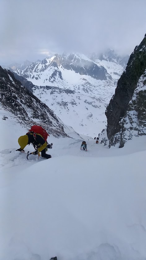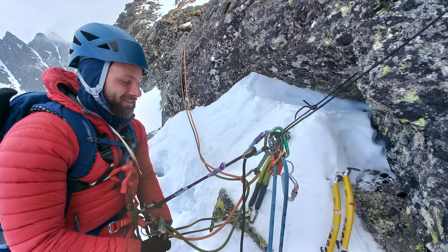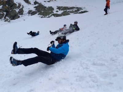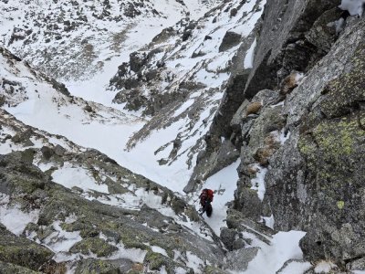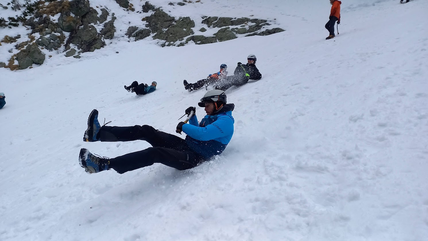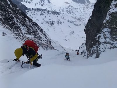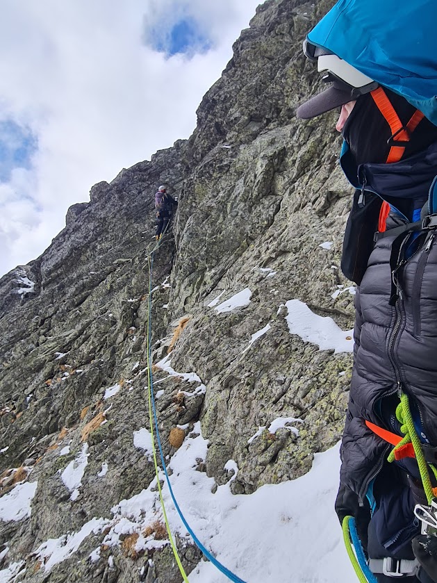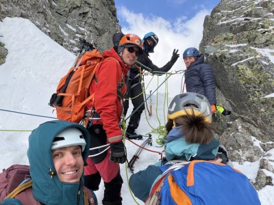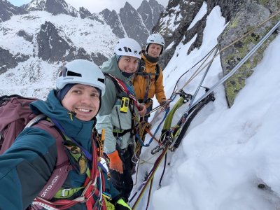 Kurz začal nácvikem chůze v mačkách a brždění cepínem. Následně jsme se pohybovali v ledu a další dny už se lezlo i po skále a lyžovalo po tatraských svazích, většinou betonově tvrdých.